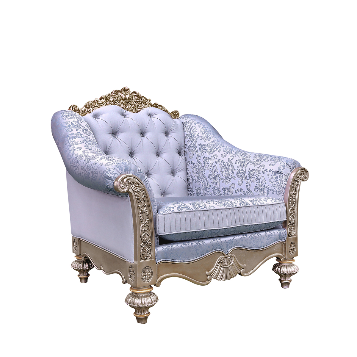 * 以現位于美國白宮中象征友誼和權力的堅毅桌(英語:Resolute desk)為設計意念, 實木雕刻與貼銀箔工藝相結合, 散發高貴典雅的氣息;舒適的軟包設計,在釘飾拉扣的點綴下,帶來超脫塵俗的藝術美。