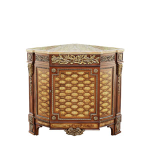 以法國凡爾賽宮為設計元素,表現法國路易時期的莊嚴和浪漫。多隔層大容量的合理設計,功能完善的組合書柜,是蘊藏知識和靈感的空間,木皮拼花紋理增添藝術韻味,是家中的“博物館”,讓我們與外界的關系更密切,帶玻璃門設計既美觀又能起到防塵防污效果。