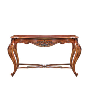 * 手工雕刻的藤蔓、阿坎瑟斯卷葉圖案和彎腳設計; 結實的連接技術; * 一個儲物抽斗,下設裝飾用層板,并在其底部采用經典硬木實木滑軌設計;