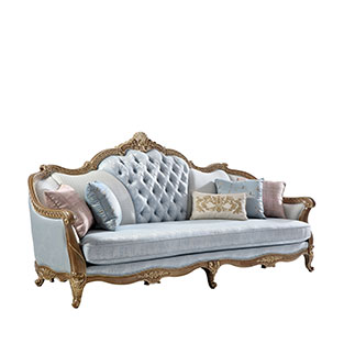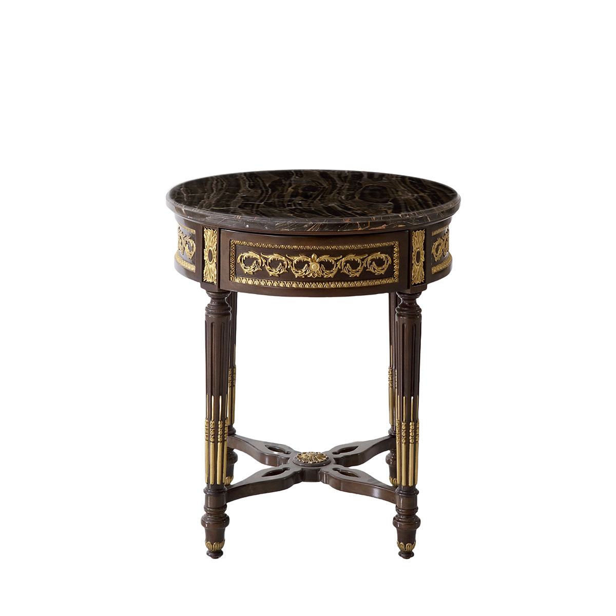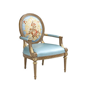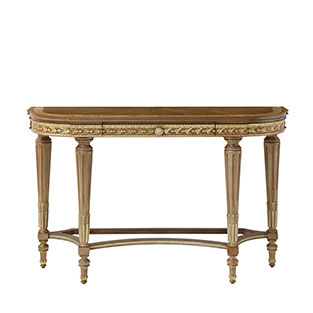 * 為表現法國路易時期的莊嚴和浪漫,以法國凡爾賽宮為設計元素。使用歌頌路易十四時期的太陽花連環雕刻,顯示其王權穩固地位的錐形腿腳設計;配以哥特式建筑中的大圓窗骨架設計、珍稀大理石臺面、建筑柱雕刻與絢麗的貼金工藝,完美演繹了法式宮廷家具的奢華尊貴。