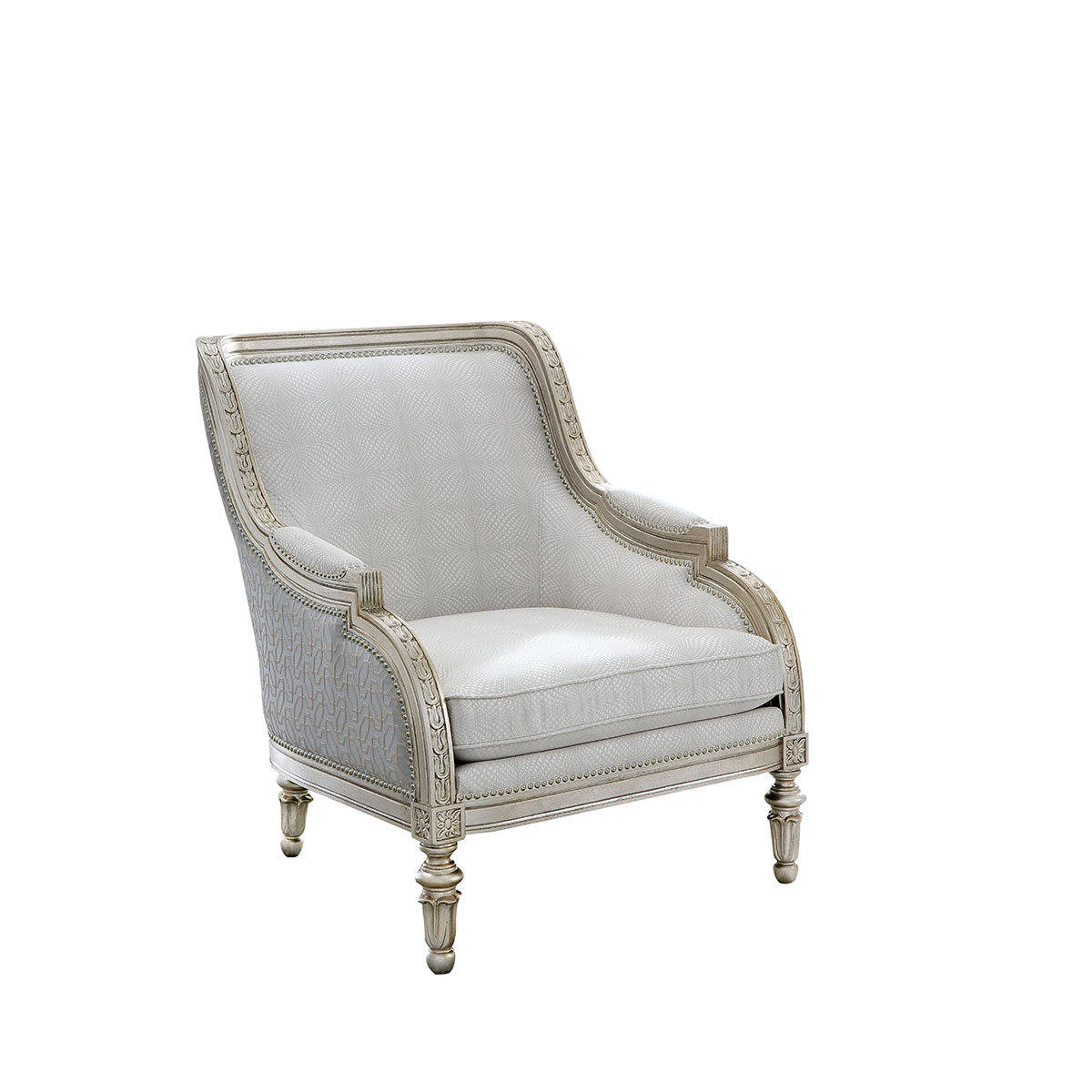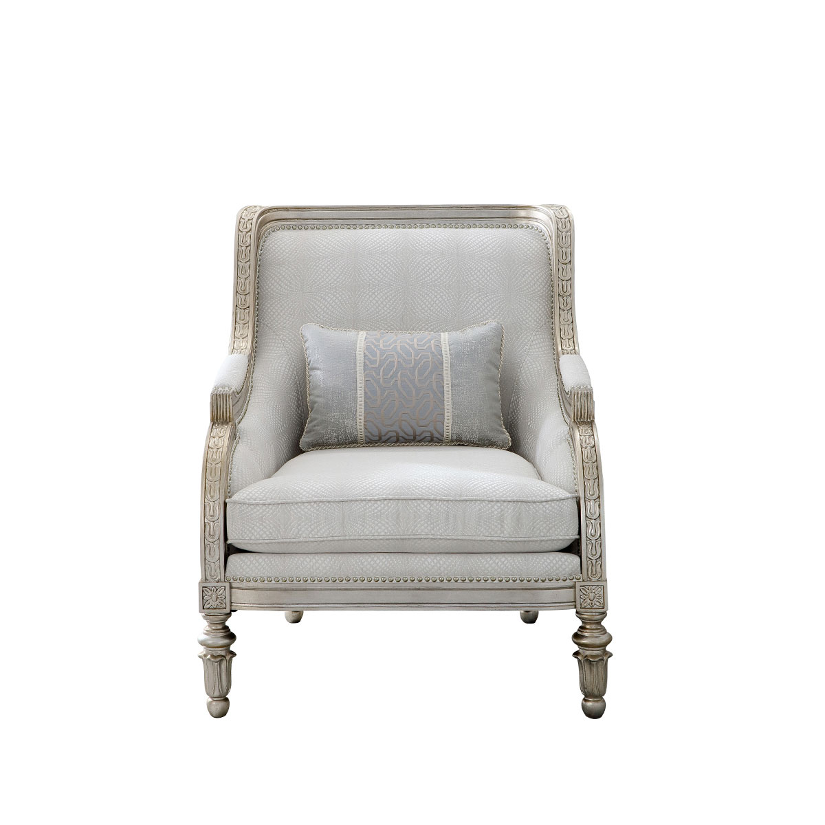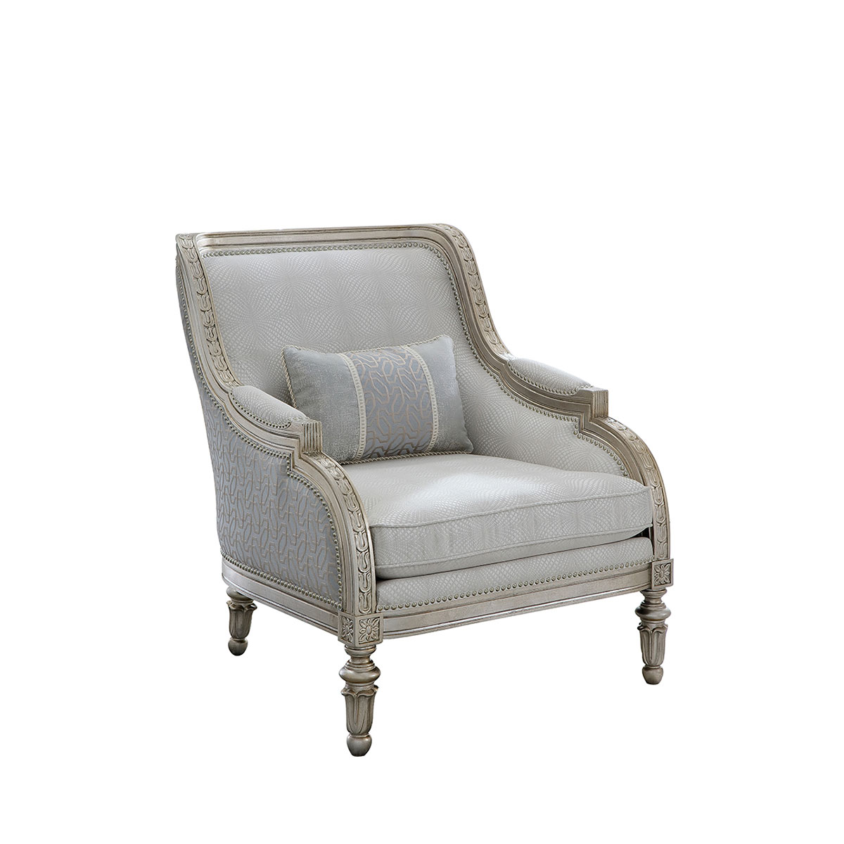 復古而有時尚感的香檳金涂裝,喚醒輕奢時尚;井然有序的雕刻,栩栩如生的花紋裝飾,使它不論從任何角度欣賞,都愈加美不勝收。含苞待放的鈴蘭花雕刻椅腳增添知性的魅力,綻放氣質光彩。