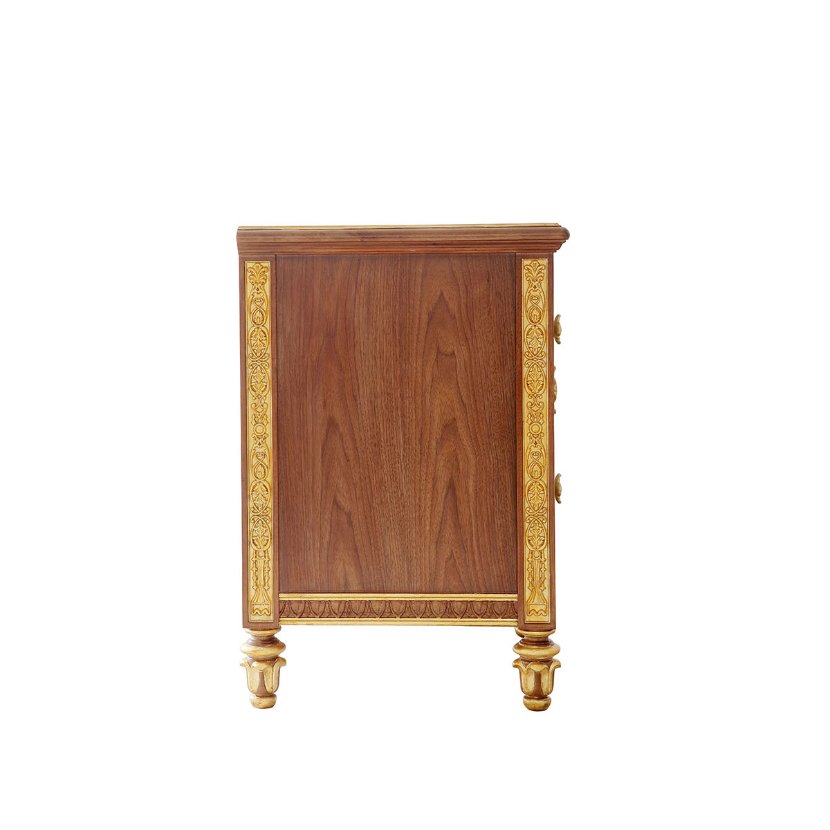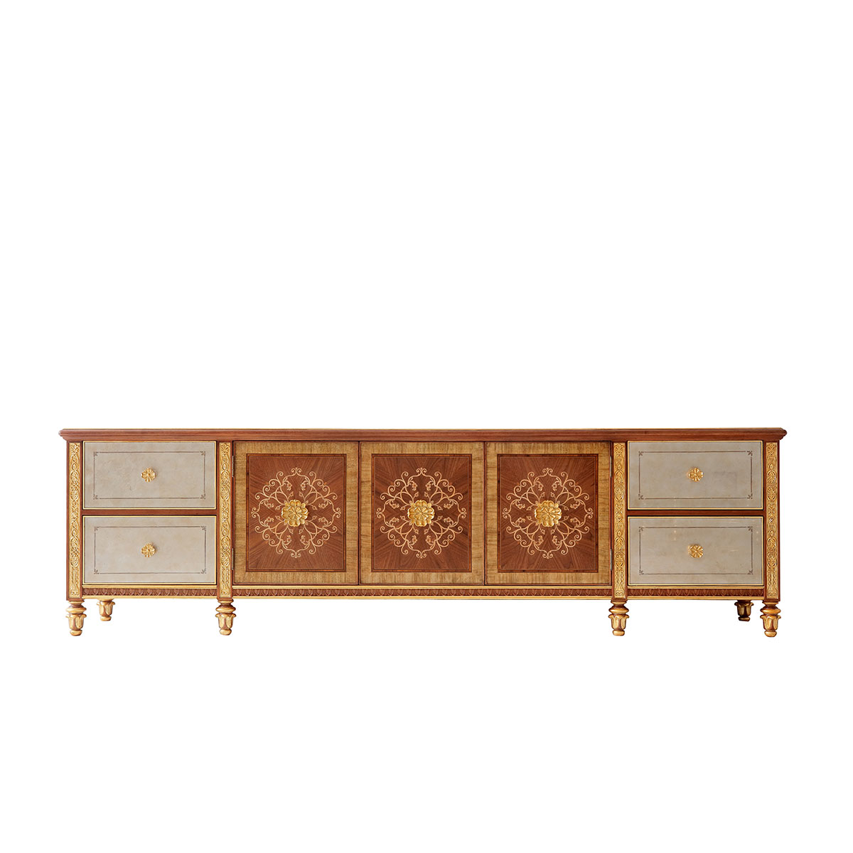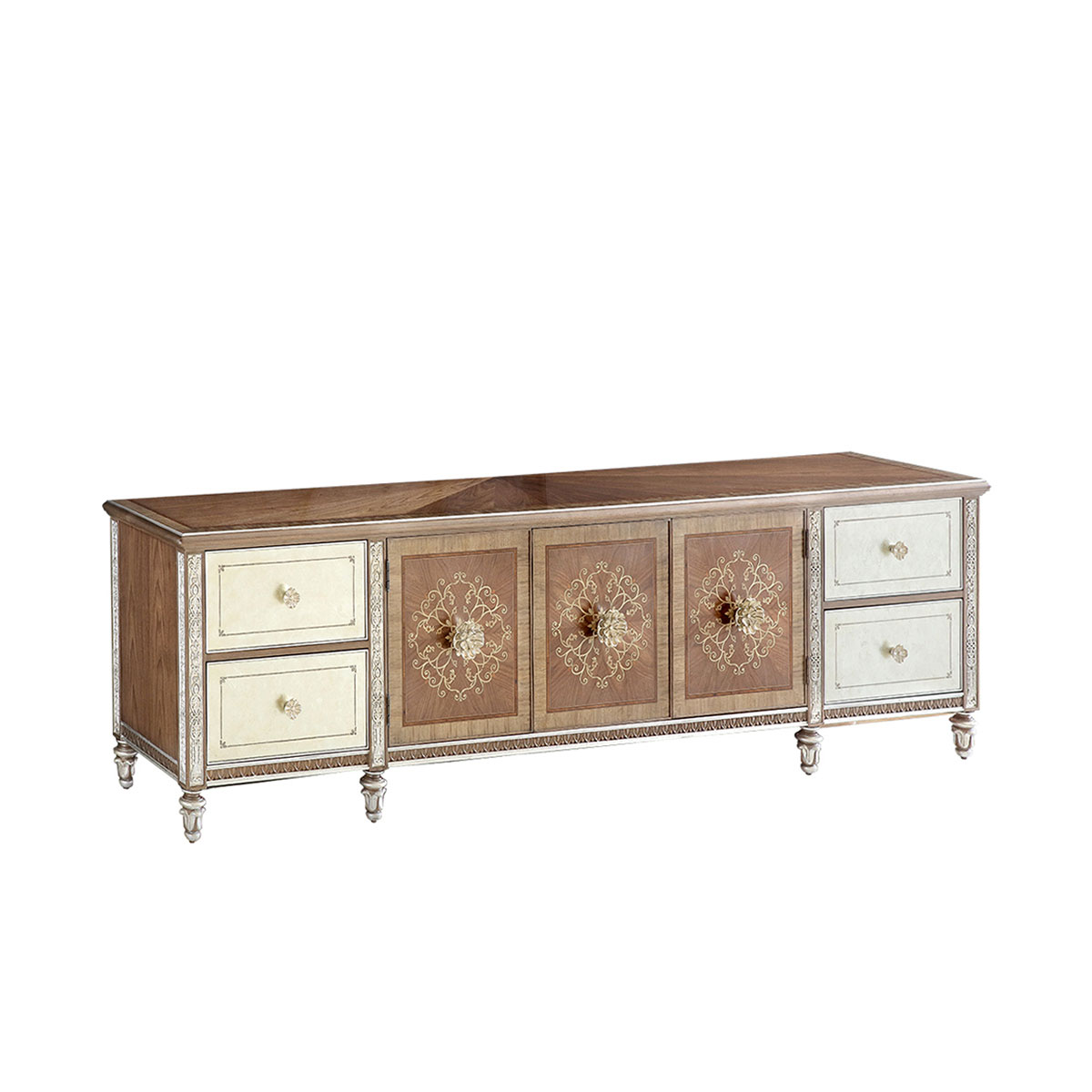 橡膠木+環(huán)保人造板+黑胡桃+艷陽花+櫻桃木等木皮貼面+藝術(shù)玻璃