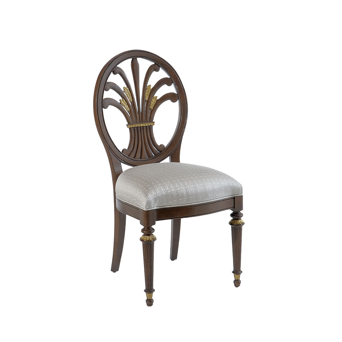 * 以意大利的宮廷家具和羅馬的古建筑為元素,使用錐形的腿腳設計、精致的手工雕刻細節和描金工藝結合,顯示王權的穩固地位;配以對稱的棕櫚葉和麥穗雕刻裝飾椅背、色彩豐富的布藝面料和厚實柔軟的填充物是豪華系列翡冷翠 意式單椅的特色。