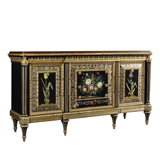 * 頂部花卉植物雕刻猶如王冠般耀眼璀璨,配上端莊大氣的造型與華麗的金箔貼飾,可謂名門新貴必備的藝術臻品。